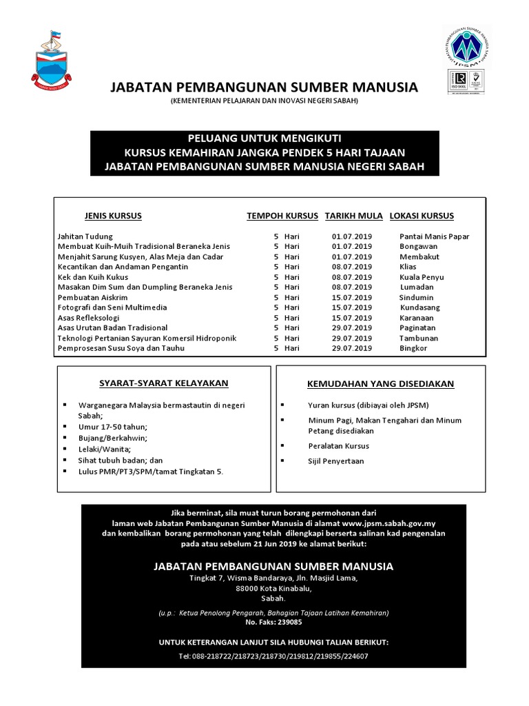 Iklan Kursus Jpsm 2019 Btlk Pdf